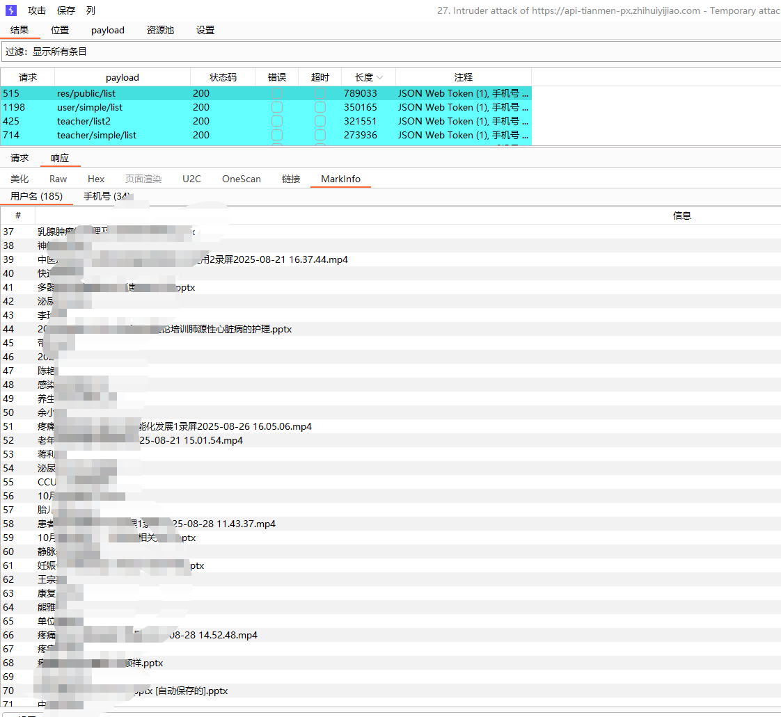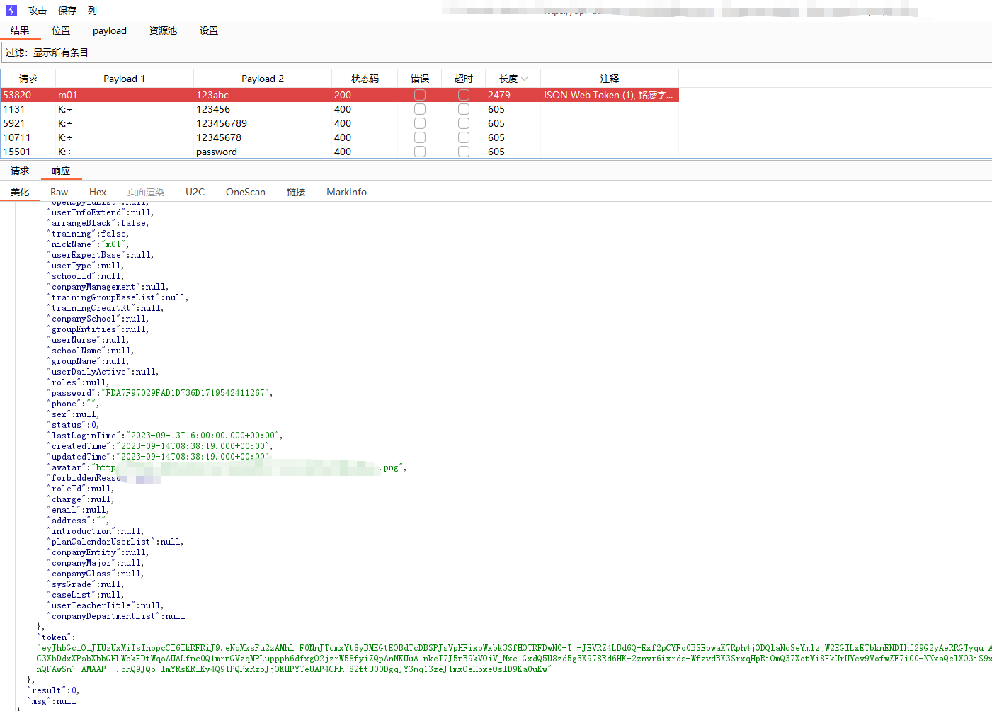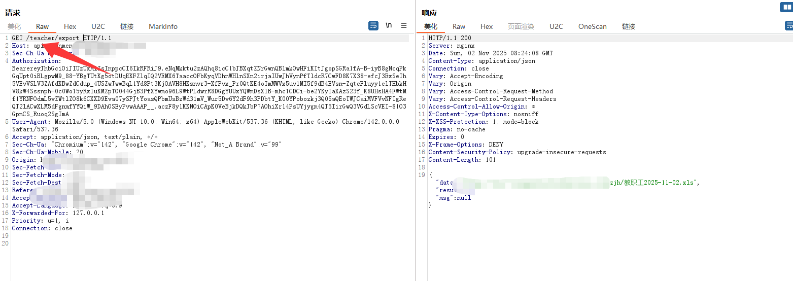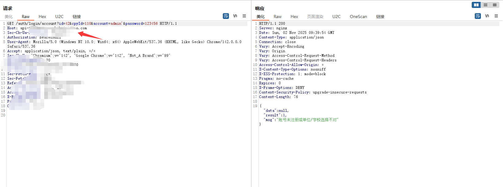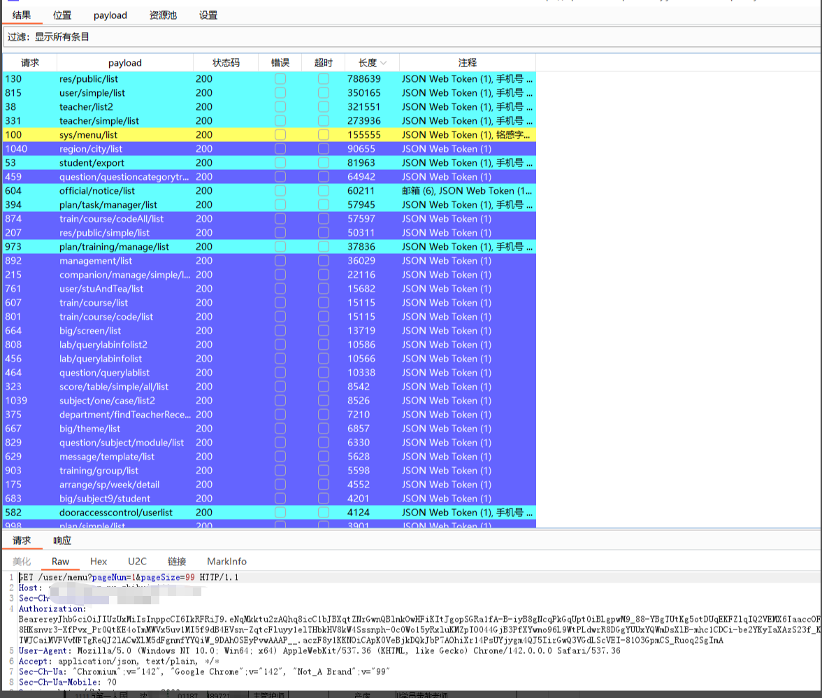 > 记录一次公司渗透项目`0-1` 突破登录框案例,思路简单但操作足够细心连贯,无论是刚入门漏洞挖掘还是对于登录框无从下手的师傅都能有所启发,将我所做的每一步操作及为什么这样做的思路详细阐述 ### 转载 欢迎转载文章提供学习,但请标明社区原文地址尊重社区内原创作者劳动成果,个人公众号:月的造梦星球, 欢迎讨论学习,共同进步 ### 信息收集 and 前台功能 开局登录框根据域名的`#`符号与`Wappalyzer`插件得出这是使用`Vue.js`站点并且也有经典的`Webpack`打包器,那么前期可以除去功能点可以选择的渗透思路有如下,基本是逐一尝试,只要达到目的就可以停止,主线任务进入管理员后台,支线任务信息泄露或其他具有危害性漏洞 ```php 1. 常规接口未授权 2. 手法拼接#未授权页面或VueCrack插件主动拼接页面尝试触发后端接口 3. 收集全量的chunk异步js通过正则脚本提取接口 ```  登录测试发现可进行用户名枚举,反馈并不是账号和密码错误,但是既然`admin`用户是存在的先上字典在后台爆破,小字典足矣,`TOP3000`没出货个人感觉更复杂的字典也没有意义, 有一种特殊情况`admin`用户可能只是自带的不见得会投入系统使用,大部分都会另起一个新的账号作为管理员,这是我渗透这么久发现比较常见的情况但爆破肯定还是需要的,毕竟弱口令挂上等捡漏就行   再利用单双引号看回显并无反应,万能密码,均无效,这也是非常正常的情况,快进到接口测试;发现功能点提供的后端地址是一处新的域名,也符合前后端分离情况,后续的接口拼接也要在提供服务的域名基础上进行 ```php api-xxxxxx.com # 提供服务地址 ```  ### 未授权接口测试 雪瞳接口捕获到大量完整带斜杠`/`绝对路径接口,并且在前期功能点测试也发现前端展示页面是`a.com`或后端提供服务地址是`b.com`那么显然我们的接口也需要放置到`b.com`,这一场景在我之前发布的文章案例中也有体现,感兴趣师傅可以再看看这篇文章 [奇安信攻防社区-攻防渗透集锦JS泄露突破多个后台](https://forum.butian.net/share/4538)  接口的拼接大部分时间是有公式化的操作的,假设站点鉴权很糟糕基本上第一波`GET`拼接拼接就会出大量的未授权信息,再利用未授权信息的蛛丝马迹;如泄露的账户、工号特征,制造账户本固定密码进入后台,这也是我一直以来碰到最多的情况,再不济也可以能找到`export`等导出接口获取业务数据 - - - - - - 插件提取到接口第一次拼接无反应,均回到后台,前台测试功能通过登录框确定了并不存在前置目录,并且响应码为`500` 回显也是请"先登录"没有鉴权信息,这个响应证明接口的放置处理肯定是正确的。 ```php GET XXXXXXXXXX ```  `POST`请求模式更糟糕了,没有一个有效信息请求,全部被`500`鉴权拦截在外,后续对进行接口简单的`Fuzz`也是一无所获,因为尝试的是`b.com`提供服务的域名接口,但还需要尝试前台展示的域名,但这里我还是一无所获,所以不贴图,但在实战中任何操作都不能放过 ```php POST xxxxxx Content-Type: application/json {} ```  ### \# 哈希路由页面测试 第一个方案常规接口拼接没有出货,转而利用`VueCrack`场景访问路由页面尝试触发其他功能接口,是否会有其他信息出现,这个时候需要一个个点访问,`BP`就这样开着,先记录所有接口再说  跳转到这种页面就按照正常测试功能点一样,输出值并观察接口是否会被调用查询,导入导出可以测试上传、`SSRF`等漏洞 ```php #/userAccount ```  搜索处可以测试注入,并且使用出现排序处不要忘记测试经典的`order by`注入,跳转了几个地方都无法调用功能点,遂放弃 ```php /#/SpManagement ```  调整至注册页面发现可以调用功能进行注册,成功注册返回有效的`jwt`,意味着已经有了低权限的账号 ```php /#/register ```   但是利用账号密码去进行登录却无法登录系统,提示部门错误应该还是有限制,但是上方成功注册得到了`JWT`相当于我们已经有了一个低权限的账号,携带未被系统"认可"的`JWT`测试接口同样也可以测试未授权问题  第一次正常`GET` 携带`JWT`拼接只有一个接口返回有效的几百个学生敏感信息,`POST`也没什么货这个时候可以尝试对`student`学生进行`Fuzz` 看是否会有老师等接口信息返回 ```php GET /student/export ```   手工替换一下参数,因为过于明显,学生单词变换为老师顺利拿到系统全部教职工信息,表格内又出现了工号,那么又可以尝试爆破进老师个人后台,此操作可以留在后面将所有接口分析结束再进行 ```php /teacher/export ------>老师列表 /student/export -------> 学生列表 ```   ### 携带页码参数拼接 只有注册功能的`JWT` 携带接口拼接出现了一部分信息泄露,除了老师爆破学号工号进入个人后台,貌似没什么有价值的东西支撑我下一步渗透进入管理员后台,但直觉告诉我 这个站点大概率是有东西的,只是我还没有发现契机,因为测试功能时`BP`一直开启记录着流量,转而去分析数据包,经过长达二分半的分析,让我发现了网站接口不寻常的地方 - - - - - - 某些接口会携带页码参数`pageNum`和`pageSize` 这其实是一个组件,用于分页查询,在之前的案例中我也利用过此方法在已有数据的基础上通过页面功能获取更多数据,那么接口主动携带了页面参数,我不妨也模仿它同样也在爆破的基础上也进行携带呢   拼接页码参数后的信息泄露比第一次多,证实思路是可行的,部分接口表格内泄露了系统全部学生的二要素信息,数据量在`3k+`  ```php /plan/ta