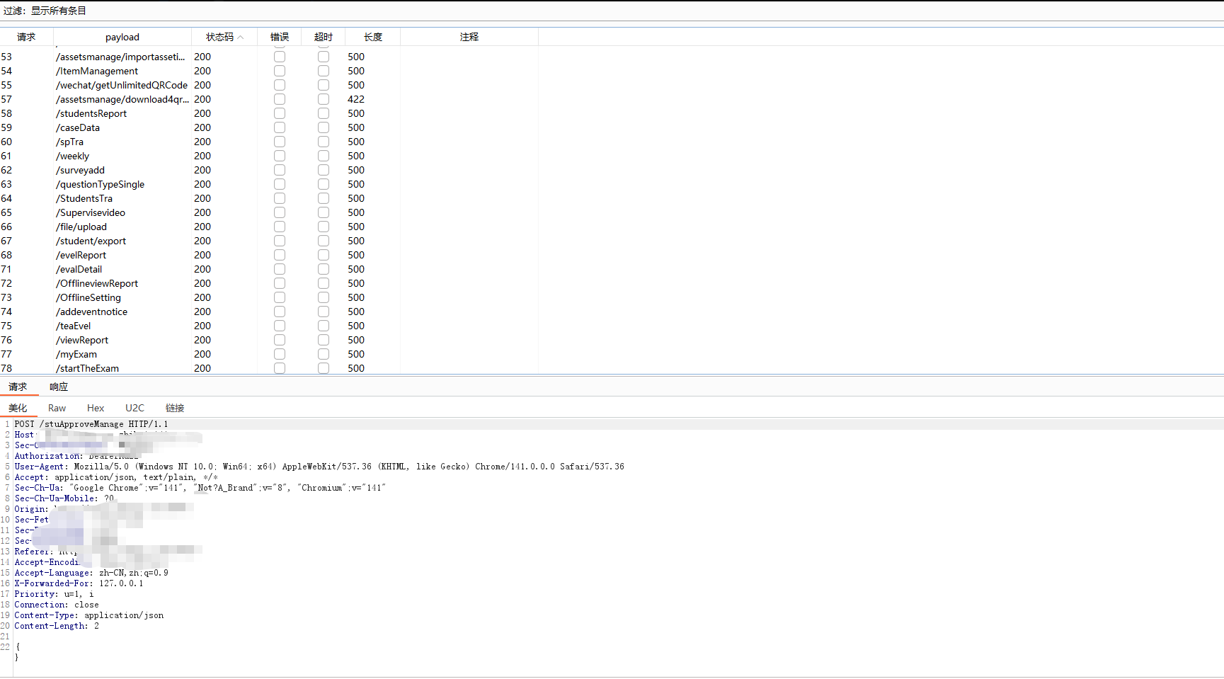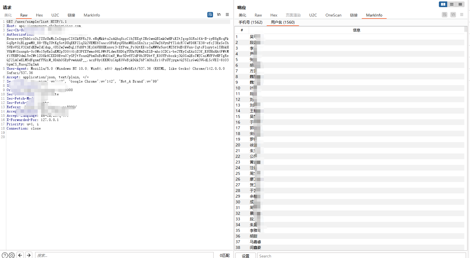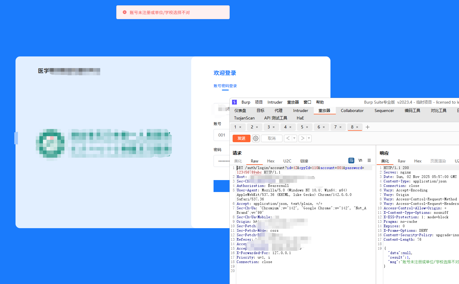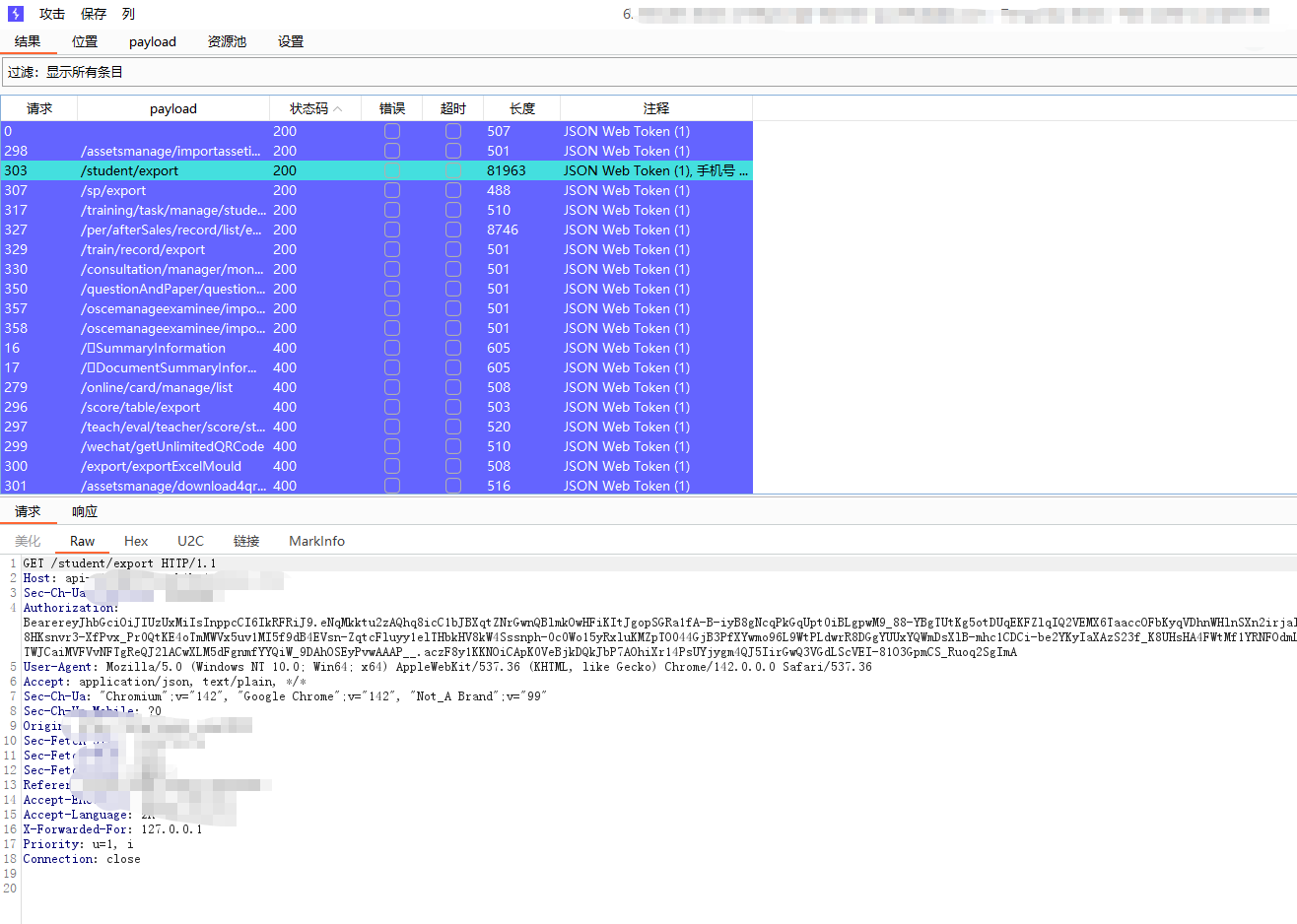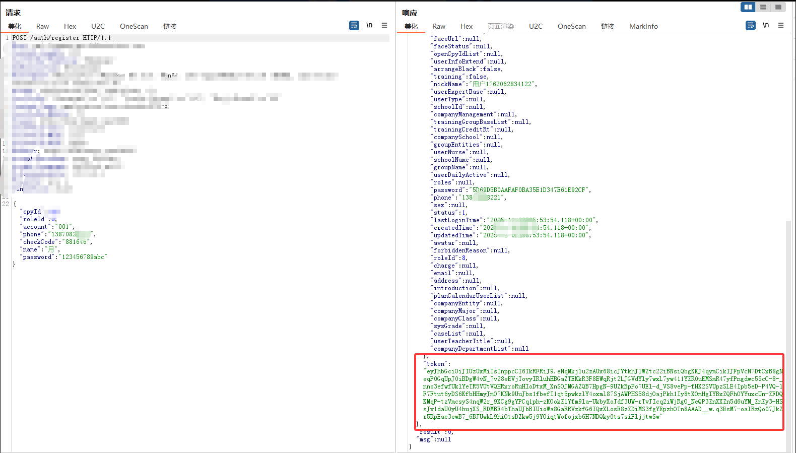 > 记录一次公司渗透项目`0-1` 突破登录框案例,思路简单但操作足够细心连贯,无论是刚入门漏洞挖掘还是对于登录框无从下手的师傅都能有所启发,将我所做的每一步操作及为什么这样做的思路详细阐述 ### 转载 欢迎转载文章提供学习,但请标明社区原文地址尊重社区内原创作者劳动成果,个人公众号:月的造梦星球, 欢迎讨论学习,共同进步 ### 信息收集 and 前台功能 开局登录框根据域名的`#`符号与`Wappalyzer`插件得出这是使用`Vue.js`站点并且也有经典的`Webpack`打包器,那么前期可以除去功能点可以选择的渗透思路有如下,基本是逐一尝试,只要达到目的就可以停止,主线任务进入管理员后台,支线任务信息泄露或其他具有危害性漏洞 ```php 1. 常规接口未授权 2. 手法拼接#未授权页面或VueCrack插件主动拼接页面尝试触发后端接口 3. 收集全量的chunk异步js通过正则脚本提取接口 ```  登录测试发现可进行用户名枚举,反馈并不是账号和密码错误,但是既然`admin`用户是存在的先上字典在后台爆破,小字典足矣,`TOP3000`没出货个人感觉更复杂的字典也没有意义, 有一种特殊情况`admin`用户可能只是自带的不见得会投入系统使用,大部分都会另起一个新的账号作为管理员,这是我渗透这么久发现比较常见的情况但爆破肯定还是需要的,毕竟弱口令挂上等捡漏就行   再利用单双引号看回显并无反应,万能密码,均无效,这也是非常正常的情况,快进到接口测试;发现功能点提供的后端地址是一处新的域名,也符合前后端分离情况,后续的接口拼接也要在提供服务的域名基础上进行 ```php api-xxxxxx.com # 提供服务地址 ```  ### 未授权接口测试 雪瞳接口捕获到大量完整带斜杠`/`绝对路径接口,并且在前期功能点测试也发现前端展示页面是`a.com`或后端提供服务地址是`b.com`那么显然我们的接口也需要放置到`b.com`,这一场景在我之前发布的文章案例中也有体现,感兴趣师傅可以再看看这篇文章 [奇安信攻防社区-攻防渗透集锦JS泄露突破多个后台](https://forum.butian.net/share/4538)  接口的拼接大部分时间是有公式化的操作的,假设站点鉴权很糟糕基本上第一波`GET`拼接拼接就会出大量的未授权信息,再利用未授权信息的蛛丝马迹;如泄露的账户、工号特征,制造账户本固定密码进入后台,这也是我一直以来碰到最多的情况,再不济也可以能找到`export`等导出接口获取业务数据 - - - - - - 插件提取到接口第一次拼接无反应,均回到后台,前台测试功能通过登录框确定了并不存在前置目录,并且响应码为`500` 回显也是请"先登录"没有鉴权信息,这个响应证明接口的放置处理肯定是正确的。 ```php GET XXXXXXXXXX ```  `POST`请求模式更糟糕了,没有一个有效信息请求,全部被`500`鉴权拦截在外,后续对进行接口简单的`Fuzz`也是一无所获,因为尝试的是`b.com`提供服务的域名接口,但还需要尝试前台展示的域名,但这里我还是一无所获,所以不贴图,但在实战中任何操作都不能放过 ```php POST xxxxxx Content-Type: application/json {} ```  ### \# 哈希路由页面测试 第一个方案常规接口拼接没有出货,转而利用`VueCrack`场景访问路由页面尝试触发其他功能接口,是否会有其他信息出现,这个时候需要一个个点访问,`BP`就这样开着,先记录所有接口再说  跳转到这种页面就按照正常测试功能点一样,输出值并观察接口是否会被调用查询,导入导出可以测试上传、`SSRF`等漏洞 ```php #/userAccount ```  搜索处可以测试注入,并且使用出现排序处不要忘记测试经典的`order by`注入,跳转了几个地方都无法调用功能点,遂放弃 ```php /#/SpManagement ```  调整至注册页面发现可以调用功能进行注册,成功注册返回有效的`jwt`,意味着已经有了低权限的账号 ```php /#/register ```   但是利用账号密码去进行登录却无法登录系统,提示部门错误应该还是有限制,但是上方成功注册得到了`JWT`相当于我们已经有了一个低权限的账号,携带未被系统"认可"的`JWT`测试接口同样也可以测试未授权问题  第一次正常`GET` 携带`JWT`拼接只有一个接口返回有效的几百个学生敏感信息,`POST`也没什么货这个时候可以尝试对`student`学生进行`Fuzz` 看是否会有老师等接口信息返回 ```php GET /student/export ```   手工替换一下参数,因为过于明显,学生单词变换为老师顺利拿到系统全部教职工信息,表格内又出现了工号,那么又可以尝试爆破进老师个人后台,此操作可以留在后面将所有接口分析结束再进行 ```php /teacher/export ------>老师列表 /student/export -------> 学生列表 ```   ### 携带页码参数拼接 只有注册功能的`JWT` 携带接口拼接出现了一部分信息泄露,除了老师爆破学号工号进入个人后台,貌似没什么有价值的东西支撑我下一步渗透进入管理员后台,但直觉告诉我 这个站点大概率是有东西的,只是我还没有发现契机,因为测试功能时`BP`一直开启记录着流量,转而去分析数据包,经过长达二分半的分析,让我发现了网站接口不寻常的地方 - - - - - - 某些接口会携带页码参数`pageNum`和`pageSize` 这其实是一个组件,用于分页查询,在之前的案例中我也利用过此方法在已有数据的基础上通过页面功能获取更多数据,那么接口主动携带了页面参数,我不妨也模仿它同样也在爆破的基础上也进行携带呢   拼接页码参数后的信息泄露比第一次多,证实思路是可行的,部分接口表格内泄露了系统全部学生的二要素信息,数据量在`3k+`  ```php /plan/ta