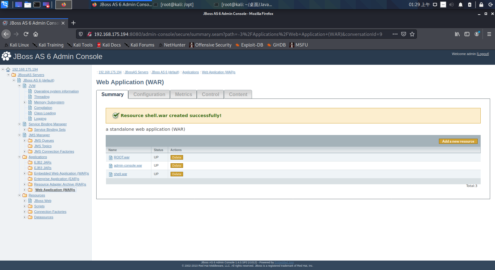 # Jboss ## 前言 JBoss是一个基于J2EE的开发源代码的应用服务器。JBoss代码遵循LGPL许可,可以在任何商业应用中免费使用。JBoss是一个管理EJB的容器和服务器,支持EJB1.1、EJB2.0和EJB3的...
