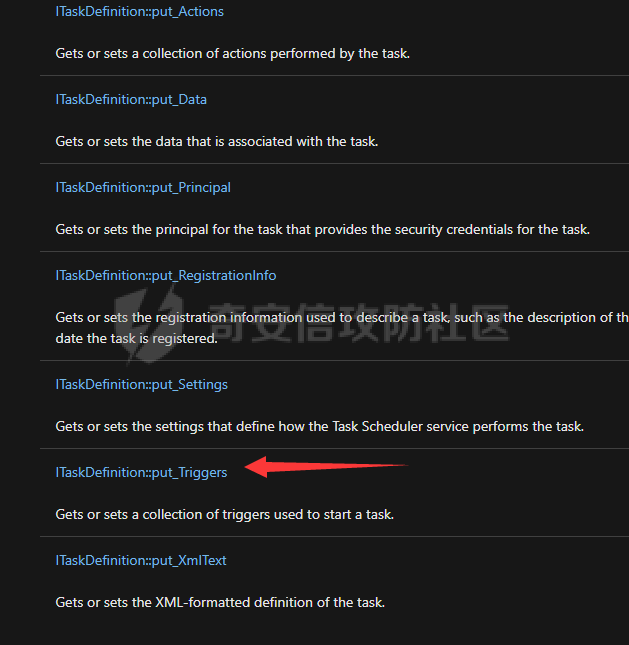 基础知识 ==== 计划任务是系统的常见功能,利用任务计划功能,可以将任何脚本、程序或文档安排在某个最方便的时间运行。任务计划在每次系统启动的时候启动并在后台运行。 当我们需要在服务器上定时执行一些重复性的事件时使用的,可以通过计划任务程序来运行准备好的[脚本](https://baike.baidu.com/item/%E8%84%9A%E6%9C%AC/399)、批处理文件夹、[程序](https://baike.baidu.com/item/%E7%A8%8B%E5%BA%8F/71525)或命令,在某个特定的时间运行。 计划任务可以在计算机管理 -> 任务计划程序 -> 任务计划程序库中能够看到 [](https://cdn-yg-zzbm.yun.qianxin.com/attack-forum/2021/11/attach-564abf9176fbf9ec0e0d8bb1090315f2427b2be1.png) 计划任务设置之后,就可以定时去执行计划任务设置的任务,那么这里我们不禁又想,能不能每次被控电脑启动的时候添加一个自启木马的计划任务来达到权限维持的作用呢?当然可以,但是这里我们能够想到通过计划任务进行权限维持,杀软肯定也早早知道了计划任务的这个功能,首先我们假设已经拿到了webshell能够命令执行添加计划任务,如下所示,这里ret=-1就是杀软拦截了命令的执行。 [](https://cdn-yg-zzbm.yun.qianxin.com/attack-forum/2021/11/attach-36831d74b2ece521565333b2b7dccc2551efa690.png) 可能这里还不是特别明显,这里我们假装已经上线了cs,然后再调用sc创建计划任务,肯定是会被杀软拦截的 [](https://cdn-yg-zzbm.yun.qianxin.com/attack-forum/2021/11/attach-5c3951637f12419aca44c3ff96aa4a87b9d364ea.png) 那咋办呢,那岂不是有杀软的情况下计划任务都执行不了了?今天就来探究一下怎样绕过杀软来添加计划任务。 初探 == 想要知其然,也要知其所以然,就要对敌人进行深入的了解,这里我们去msdn看一下`Task Scheduler`即计划任务到底是怎么解释的 > ## About the Task Scheduler > > The Task Scheduler enables you to automatically perform routine tasks on a chosen computer. Task Scheduler does this by monitoring whatever criteria you choose (referred to as triggers) and then executing the tasks when those criteria are met. 知道师傅们英文都不太好(其实是我自己看不懂英文),直接中文翻译走一波看看,计划任务能够执行的时间还挺多,确实是权限维持的一大利器 [](https://cdn-yg-zzbm.yun.qianxin.com/attack-forum/2021/11/attach-d512ce110e4afcb658664b1c280f49f6b3e85905.png) 我们随便打开一个计划任务来看一下,主要是有常规、触发器、操作、条件、设置几个菜单,但是这里的接口并不是按照这几个选项来命名的,这里一开始准备按照接口去找导致卡了半天 [](https://cdn-yg-zzbm.yun.qianxin.com/attack-forum/2021/11/attach-ee7bbdc71b1d60108e9e3da1c17ae74107892cbf.png) 首先找到注册信息接口,对应的是`IRegistrationInfo interface`即注册信息接口(这里没有英翻搞得我很难受),在这个接口下需要设置两个属性,一个是`IRegistrationInfo::get_Author`,另外一个则是`IRegistrationInfo::get_Description`,前面属性对应的是创建者,后面属性对应的是计划任务程序的描述 [](https://cdn-yg-zzbm.yun.qianxin.com/attack-forum/2021/11/attach-a5dd2724806b0595df1897128db0b9b6b4142885.png) 再就是`ITaskDefinition interface`即计划定义接口,这个接口主要是定义计划任务有哪几个组件,就是我们上面看到的诸如任务设置、触发器、注册信息等等,这个接口里面需要用到的有`ITaskDefinition::get_Settings`、`ITaskDefinition::get_Actions`、`ITaskDefinition::get_Triggers`,分别对应获取计划任务设置、计划任务组件、设置启动任务触发器的集合 [](https://cdn-yg-zzbm.yun.qianxin.com/attack-forum/2021/11/attach-37b232cc43987313d35274a0d450c16f8a738185.png) [](https://cdn-yg-zzbm.yun.qianxin.com/attack-forum/2021/11/attach-f43f2772929d6adaf39a1006420e9baf237a4092.png) `ITriggerCollection interface`为触发器收集接口,主要用到的属性有`ITriggerCollection::Create`,创建计划任务的触发器 [](https://cdn-yg-zzbm.yun.qianxin.com/attack-forum/2021/11/attach-22042f9a2917a39dee3c35a6b388aea086bcb53b.png) `ITrigger interface`为触发器接口,用到的属性有`ITrigger::put_Id`、`ITrigger::get_StartBoundary`、`ITrigger::put_EndBoundary`,分别用来设置触发器的标识符、设置触发器的日期和时间、设置停用触发器的时间 [](https://cdn-yg-zzbm.yun.qianxin.com/attack-forum/2021/11/attach-764ddeab0b3542629806932aac5bcf239029f412.png) `IExecAction interface`为命令行动作接口,主要用到`IExecAction::put_Path`、`IExecAction::put_Arguments`来设置可执行文件的路径以及和命令行关联的参数 [](https://cdn-yg-zzbm.yun.qianxin.com/attack-forum/2021/11/attach-e0c8d4b52d8d7926618226f5b3bdd08696b90735.png) 实现过程 ==== 首先梳理下思路,大体可以分为两个部分实现,首先需要进行初始化操作,再进行计划任务的创建。 我们需要初始化COM接口的环境,然后创建任务ITaskService并链接到任务服务,再从ITaskService里获取根任务Root Task Folde 的指针ITaskFolder指向新注册的服务。 当我们完成初始化的操作之后,首先创建任务定义对象来创建任务,然后对ITaskDefinition进行设置,使用 ITaskFolder 对象并利用任务定义对象 ITaskDefinition 的设置,注册任务计划 首先使用`CoInitializeEx`这个api来初始化COM接口 ```c++ HRESULT hr = CoInitializeEx(NULL, COINIT_MULTITHREADED); ``` 然后创建任务服务对象 ```c++ hr = CoCreateInstance(CLSID_TaskScheduler, NULL, CLSCTX_INPROC_SERVER, IID_ITaskService, (LPVOID*)(&m_lpITS)); ``` 再连接到任务服务 ```c++ hr = m_lpITS->Connect(_variant_t(), _variant_t(), _variant_t(), _variant_t()); ``` 获取Root Task Folder 的指针 ,这个指针指向的是新注册的任务 ```c++ hr = m_lpITS->GetFolder(_bstr_t("\"), &m_lpRootFolder); ``